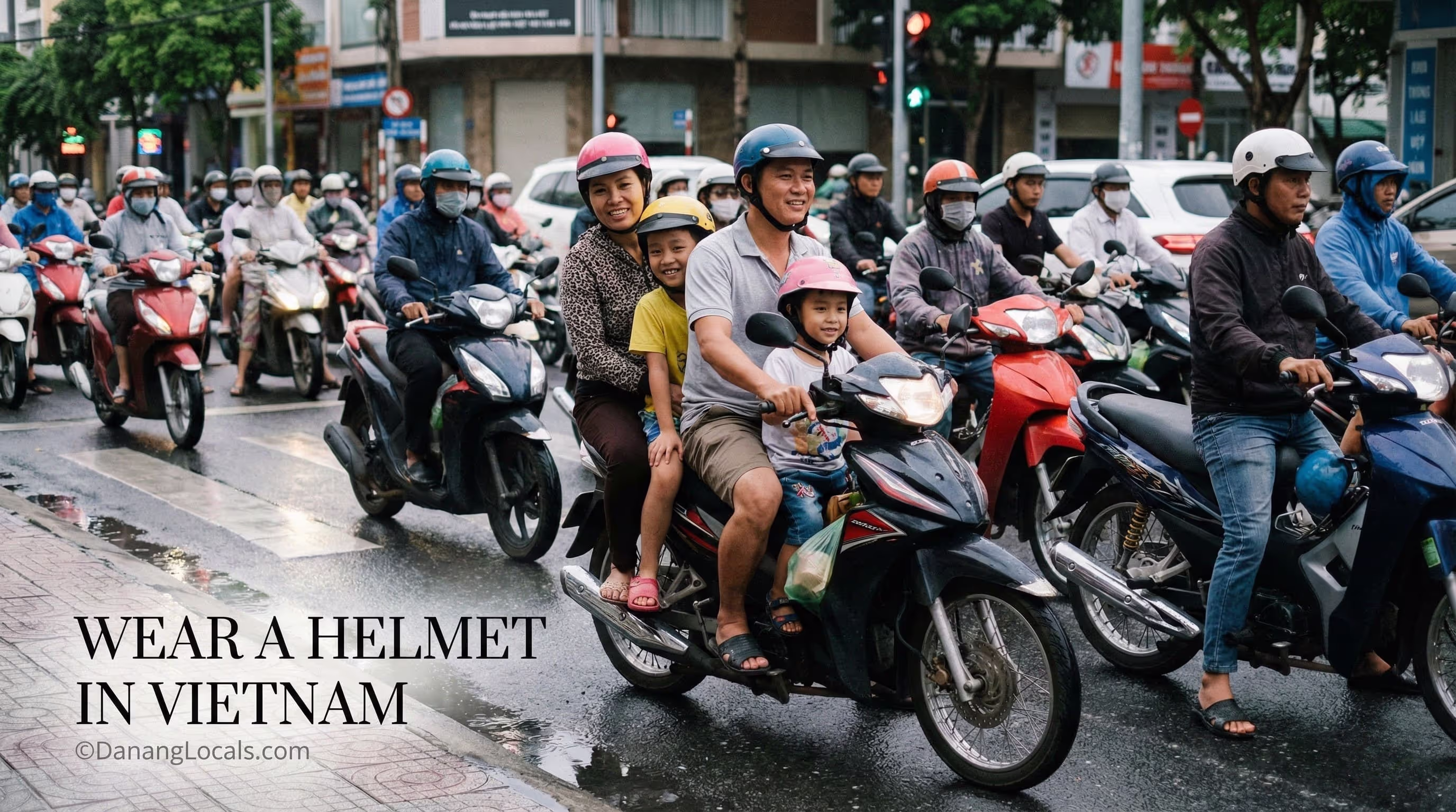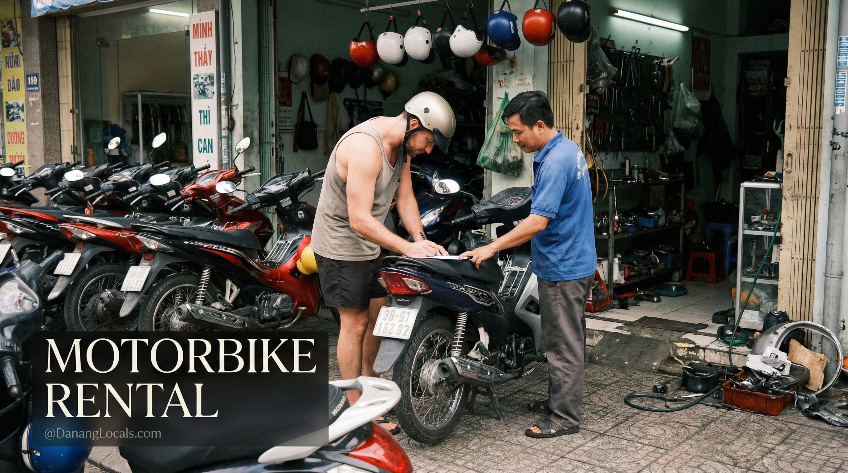 Local Insight (DanangLocals): Do not use the flimsy "fashion helmets" (looks like a baseball cap) that some rental shops give you for free. They are useless in a crash. Go to a shop and buy a standardized helmet (Brand names like Andes or Royal) for about 300,000 VND ($12). Your head is worth more than $12.